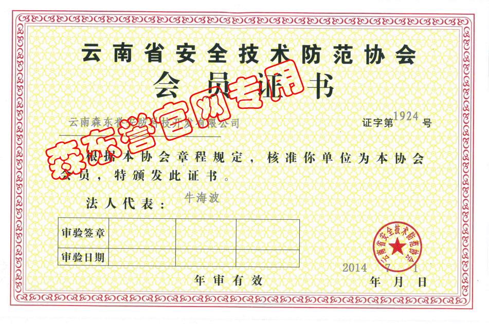 《云南省安全技术防范协会》会员证书