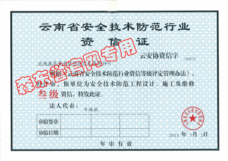 《云南省安全技术防范行业》资信证